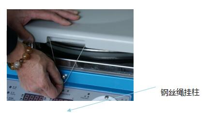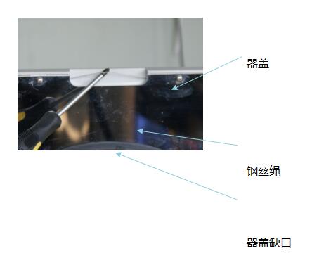 到達開蓋的溫度后,用左手扶壓住機蓋,右手手指拉出器蓋正前方缺口內的鋼絲繩。(見圖一)